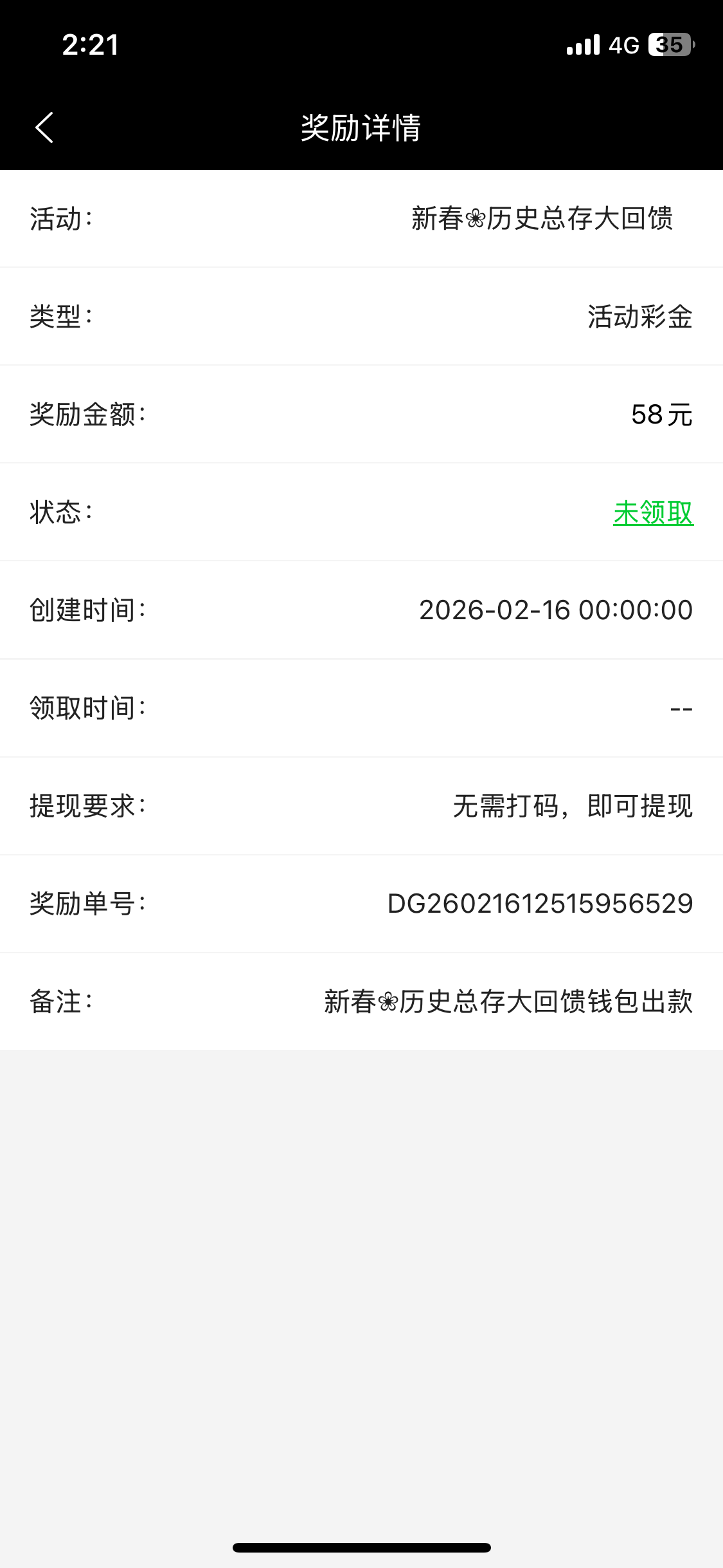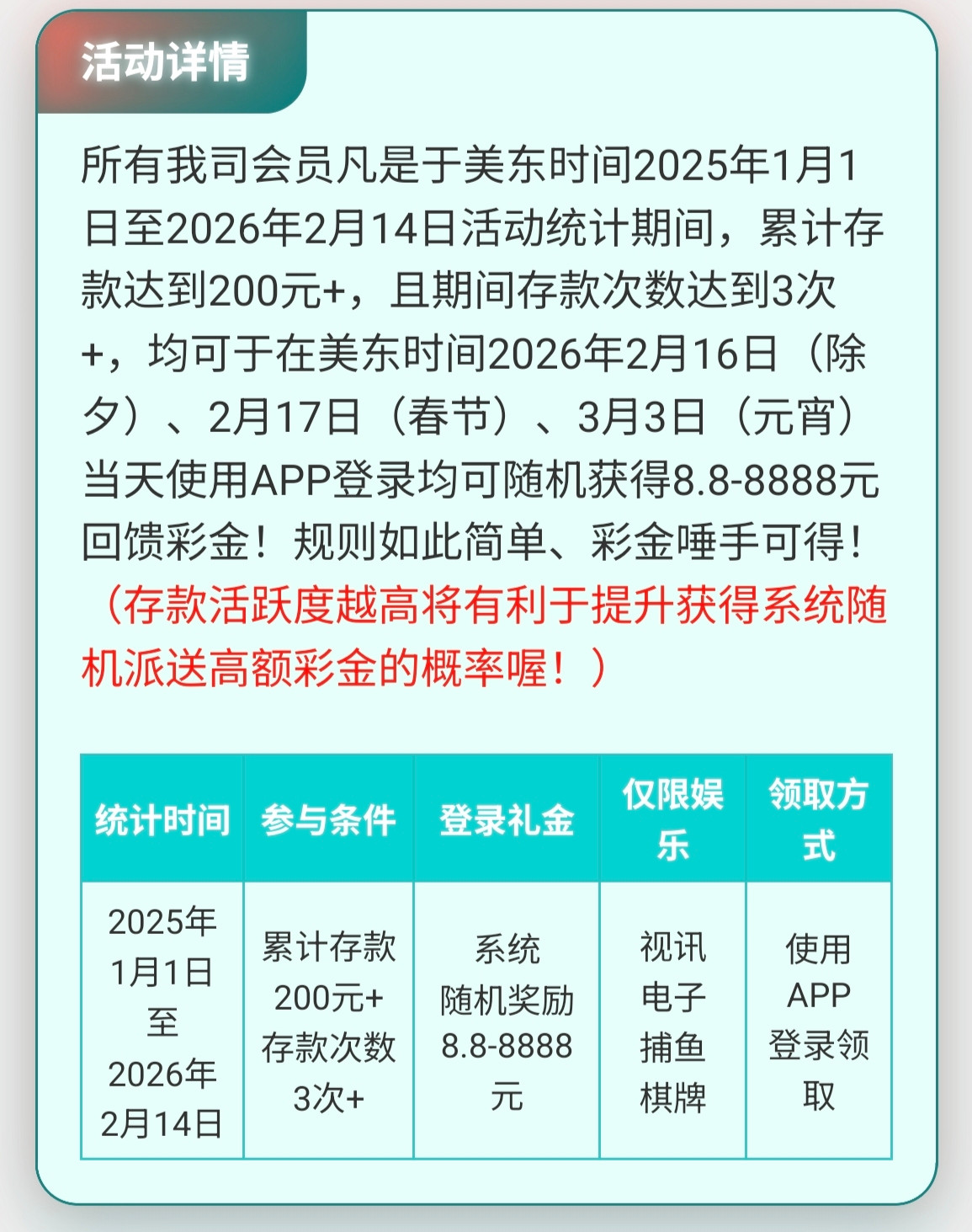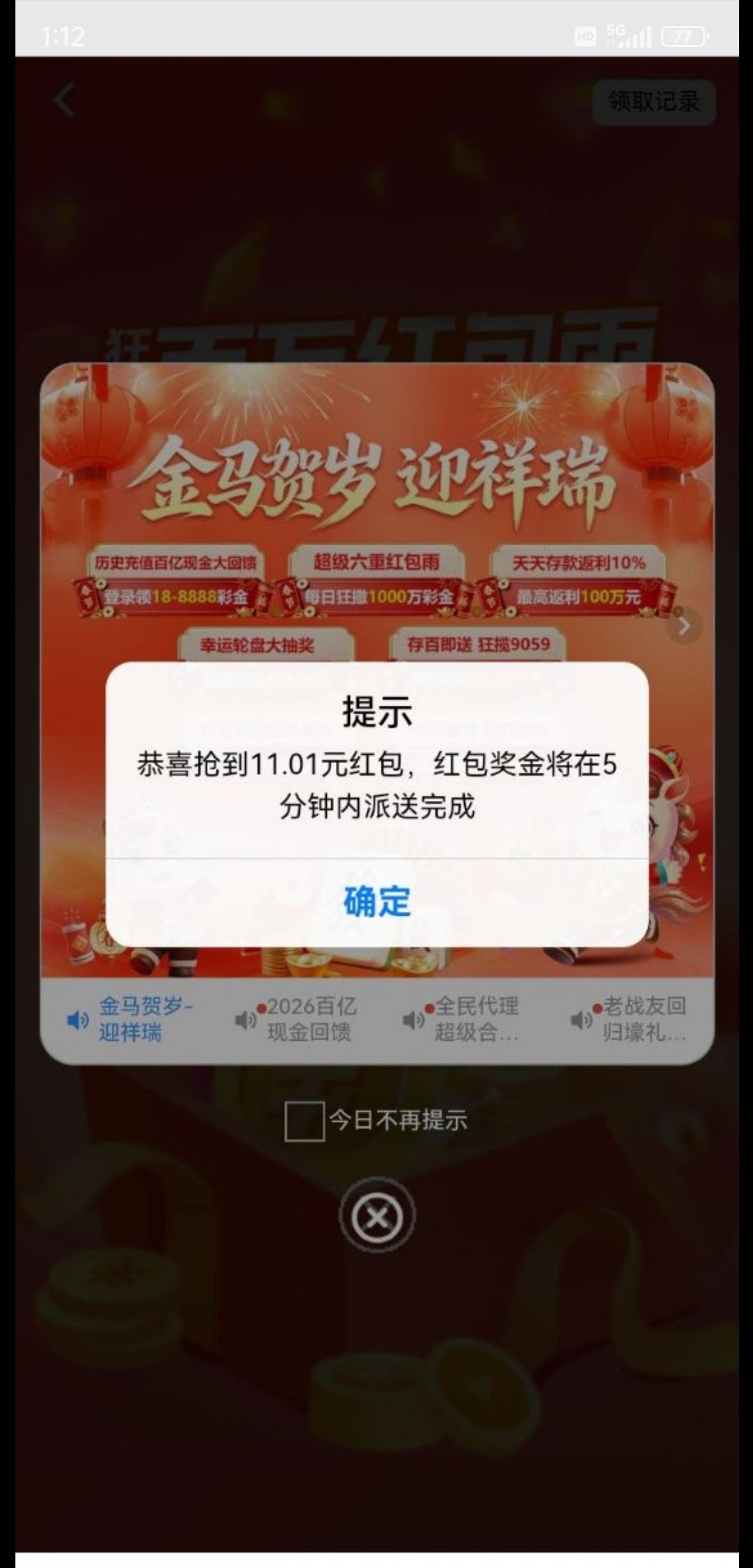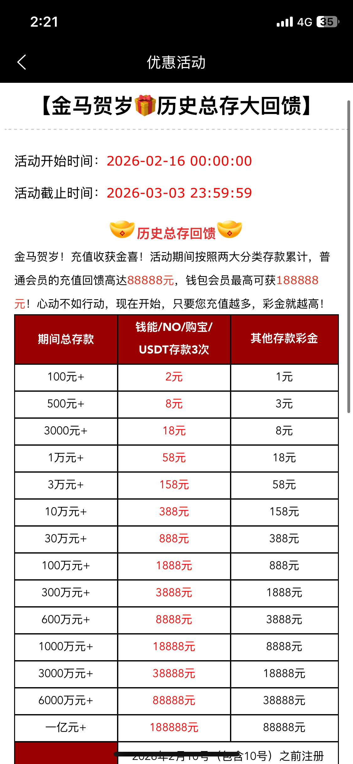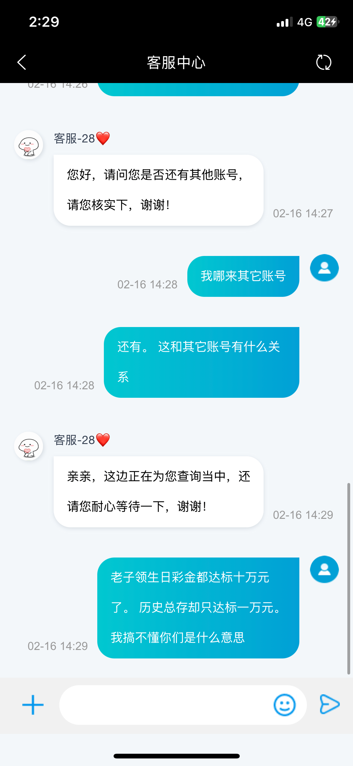 我生日彩金。还有去年历史总存都是达标十万元了的。 今年却只达标一万了。 我没话说
