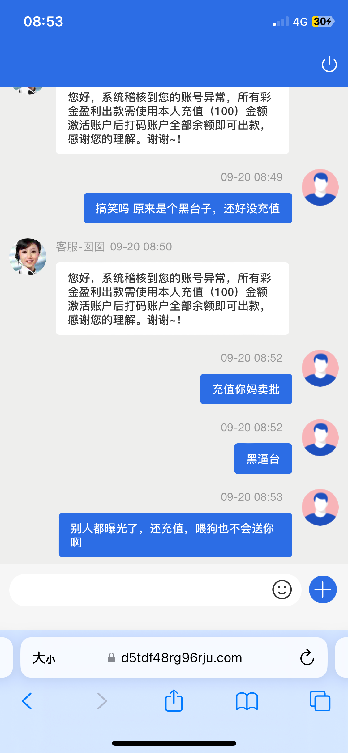 又提款失败,让充三百,呵呵,这狗比台子还是小心为好