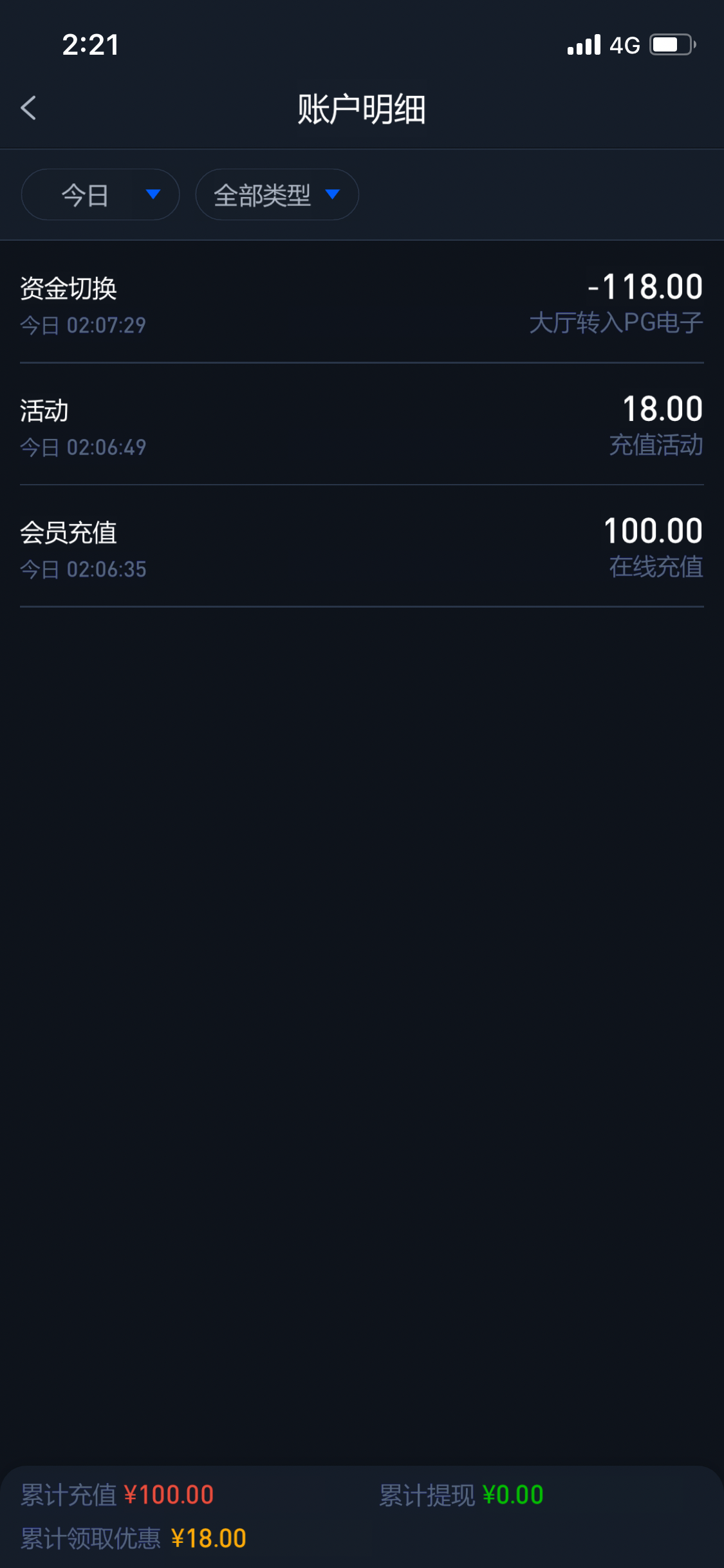 今天赢1万忍不住又充一张进去一分钟不到没了