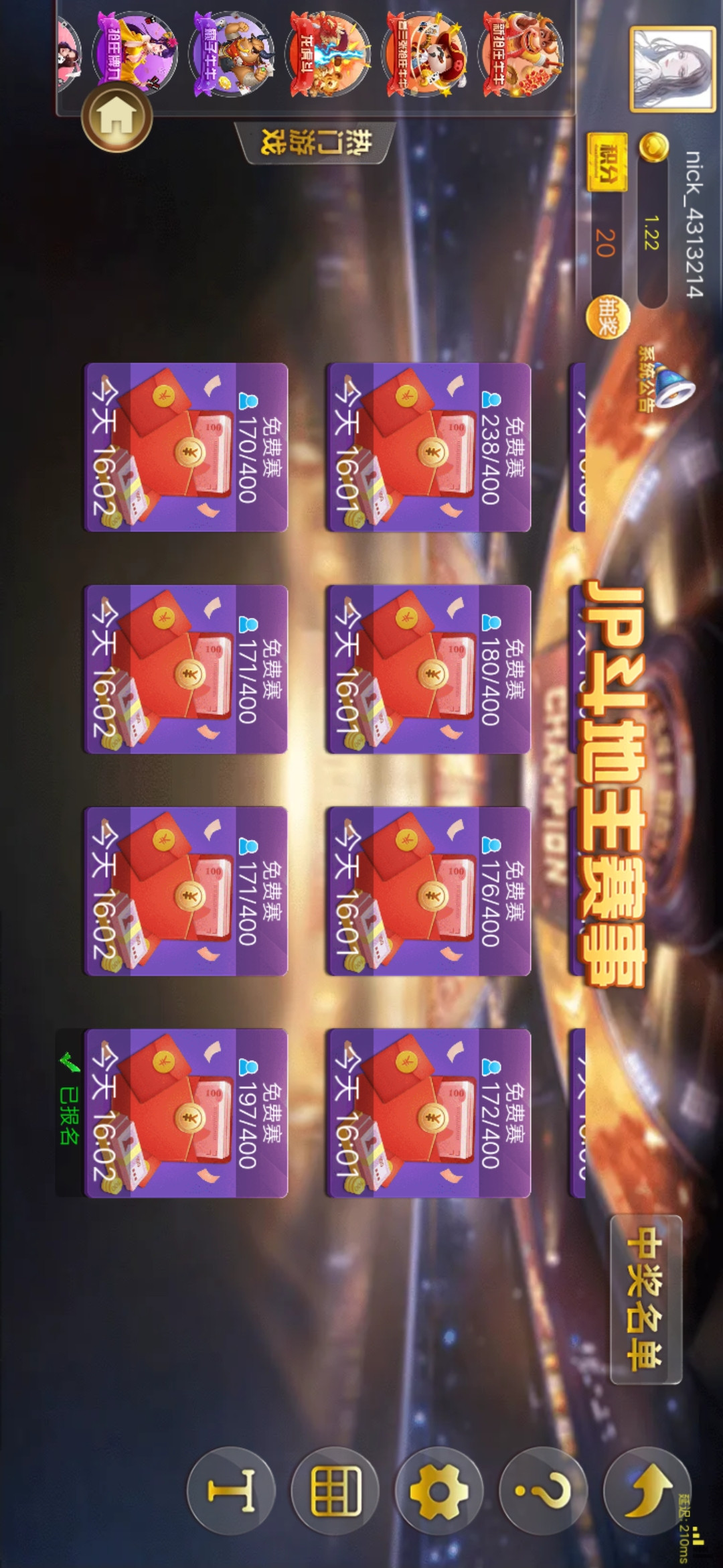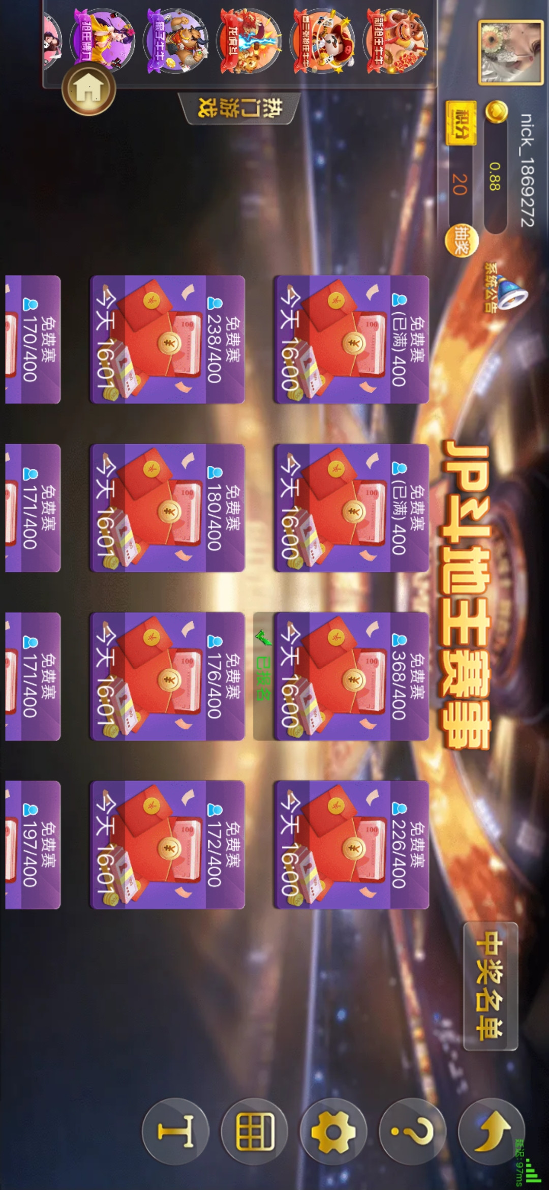 每天两次斗地主牛牛百家乐比赛。零撸白嫖没问题。