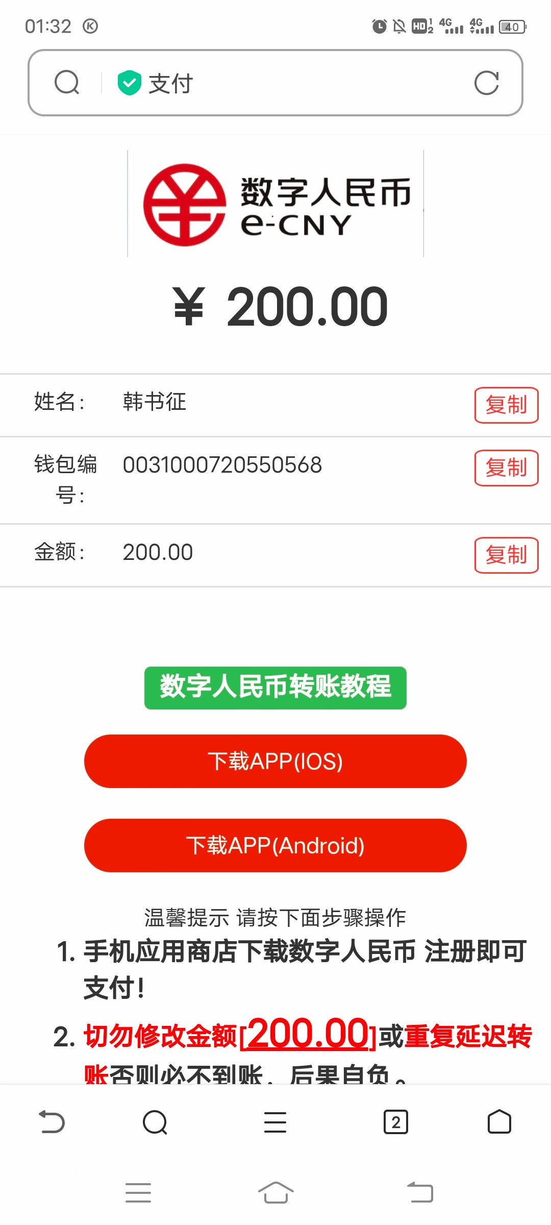 电子钱包里没钱了,选择了数字人民币上分,充了200一直不到账,问了几遍全是复制粘贴的那两句话,1点多充的,现在5点了
