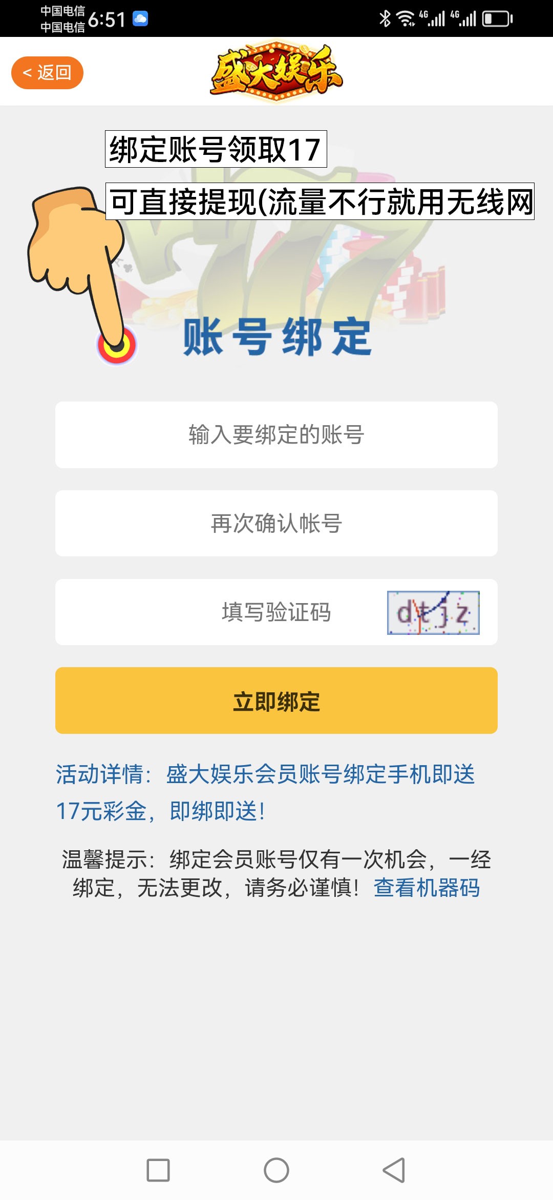 丁德响 没送等待一下或者联系客服,到账会慢一点,只要绑定上了绝对会送的