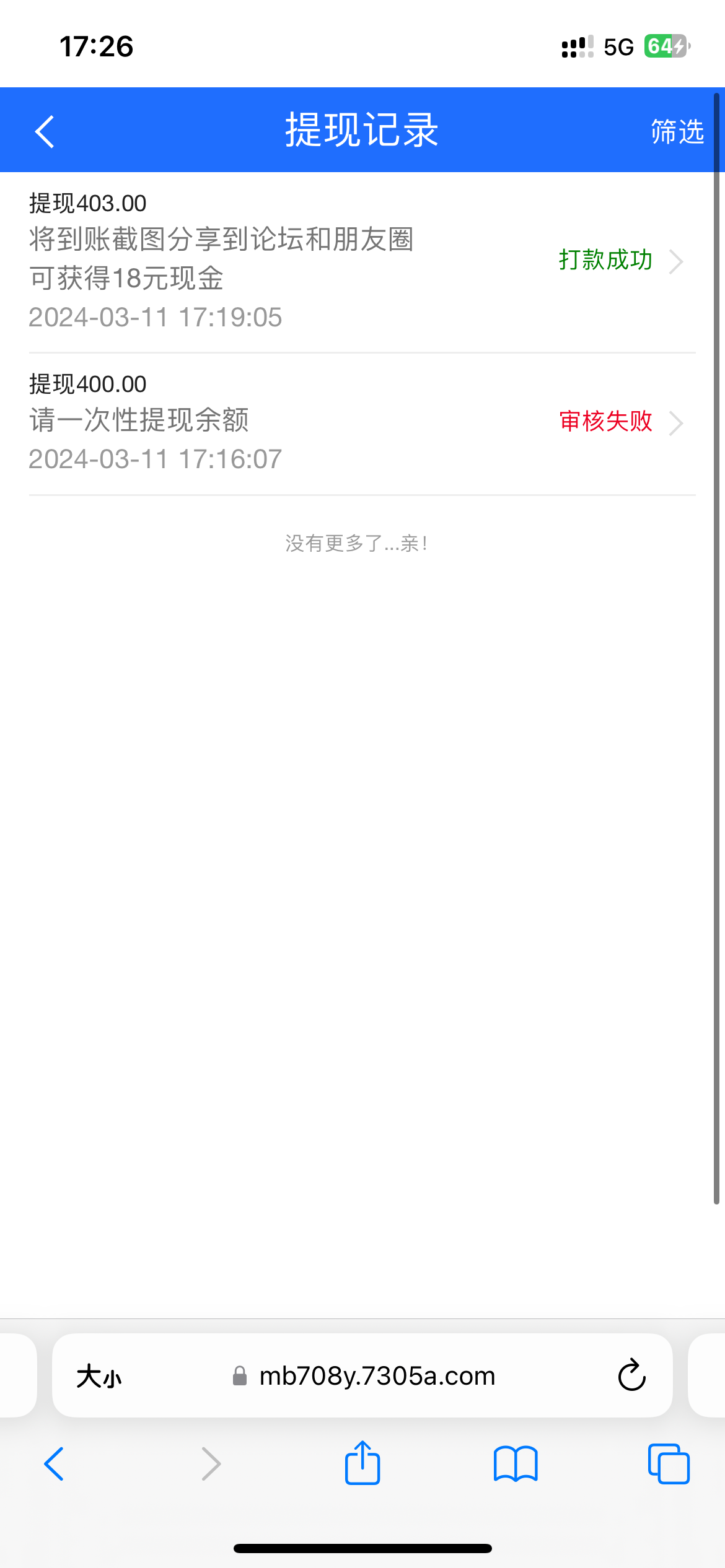 大水提现到账