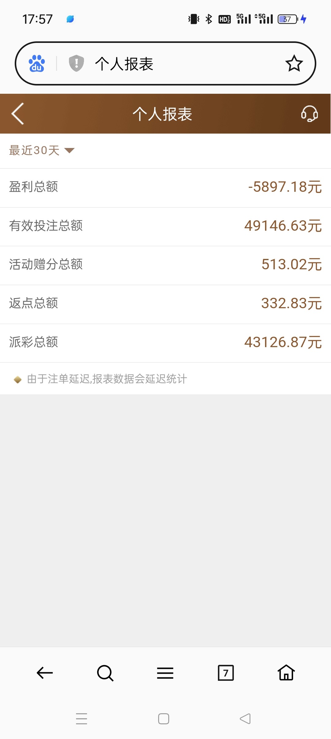 谁不是从大赢到大输,18年元旦我用狗庄送的588一晚上打到67个,3天赢120多个,然后一个星期倒输80个,之后就一直赢赢输输弄的负债累累