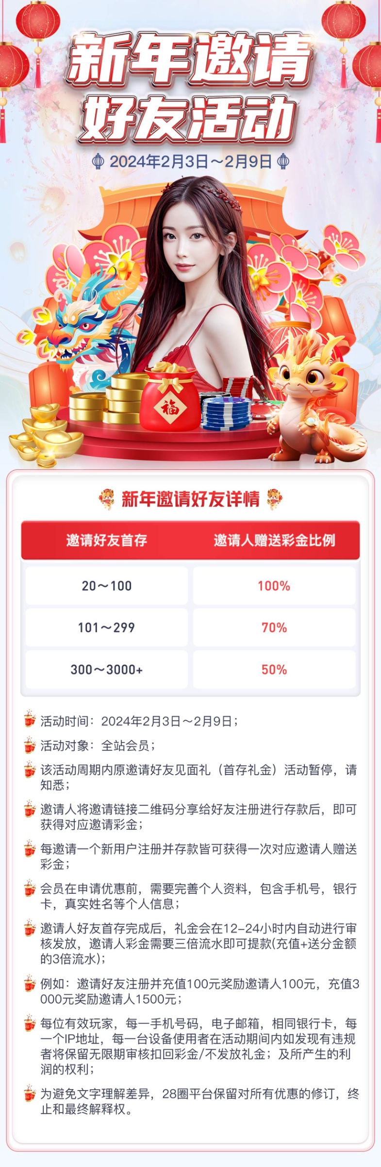 邀请好友100%彩金