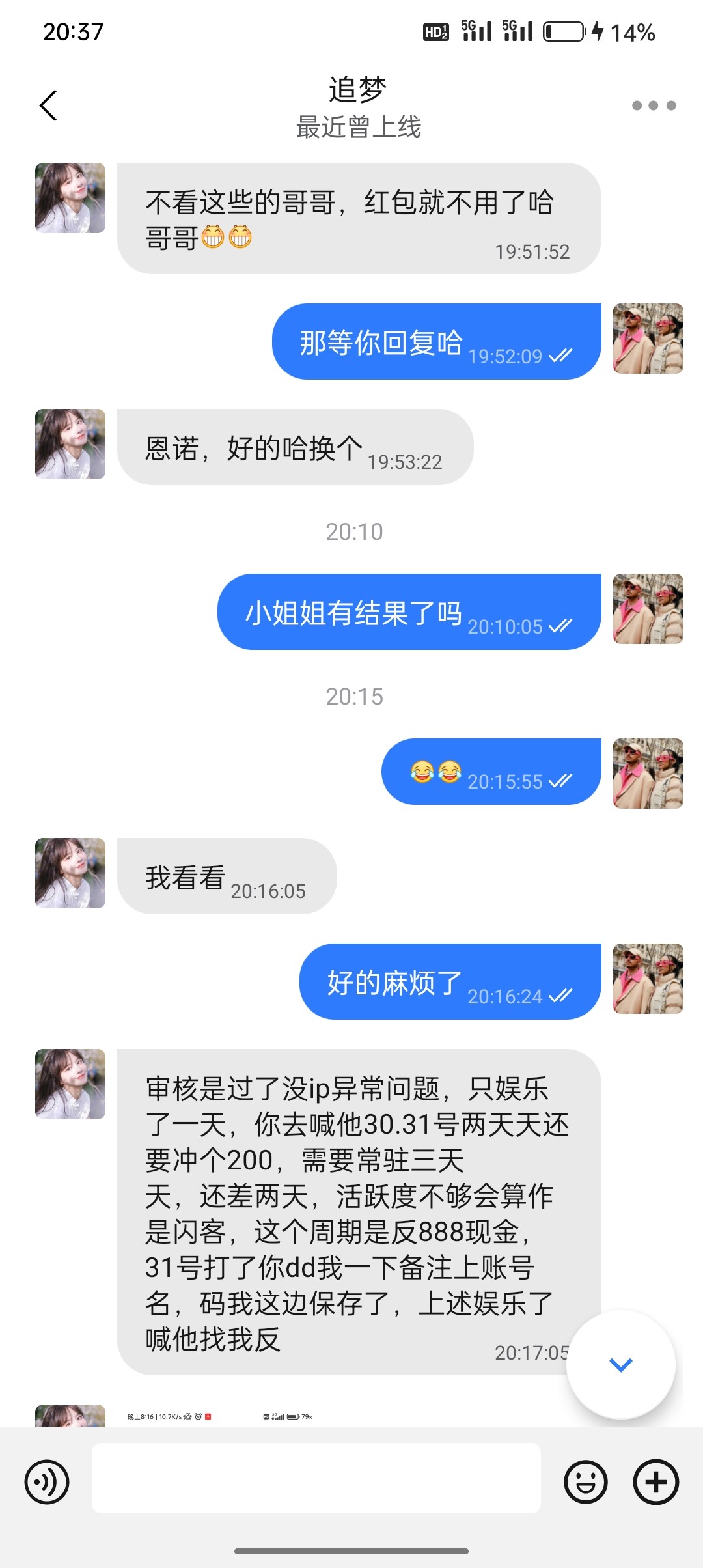 旺旺加的,一开始说充值 满 500 送 488,今天刚注册直接充满了,然后去申请,说我是闪客,要明天后天再继续每天存两百然后送 888,我今天在这个网站已经赢 300 了,且提款了,有没有继续玩下去的必要。