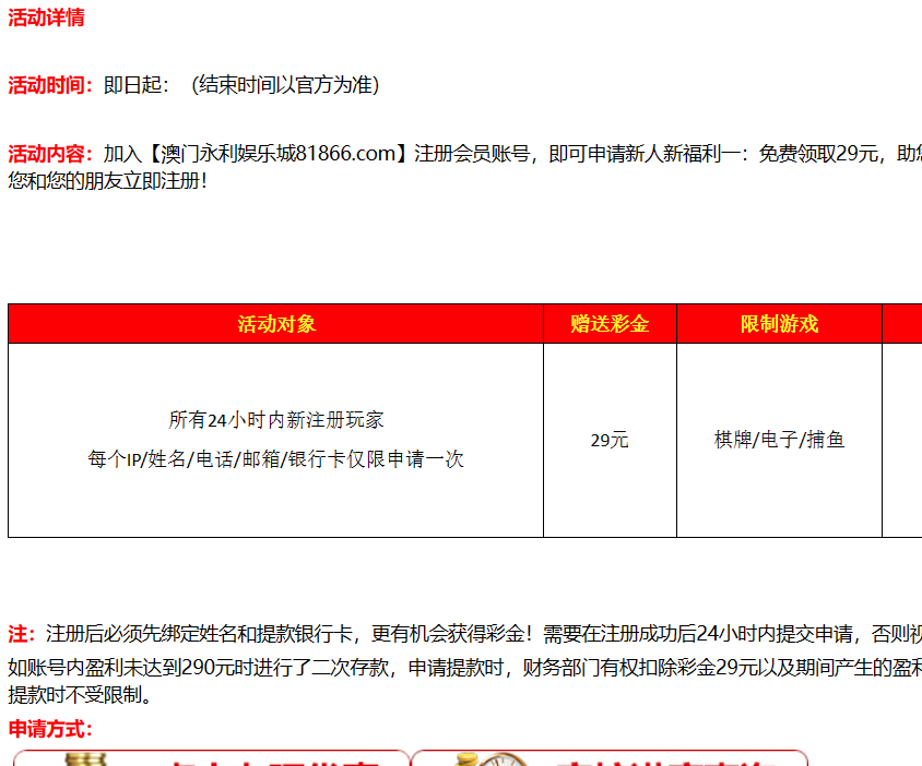活动详情:新用户注册绑卡 点击优惠自助申请28彩金 现在人少好申请 游戏和提款限制自行查看优惠