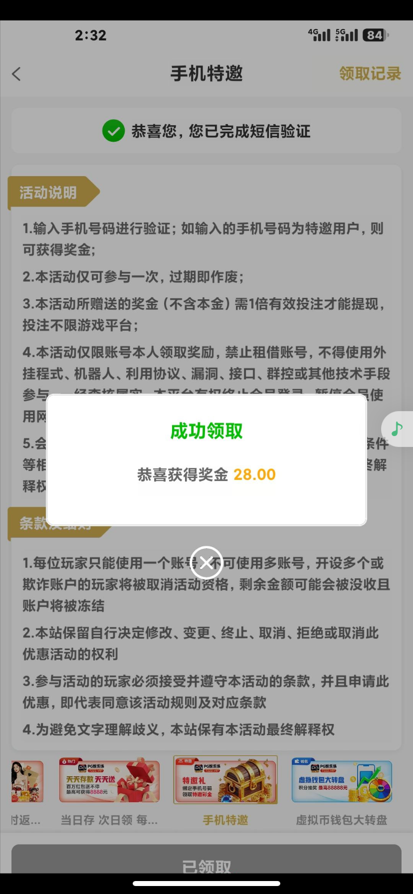 手机号特邀验证彩金