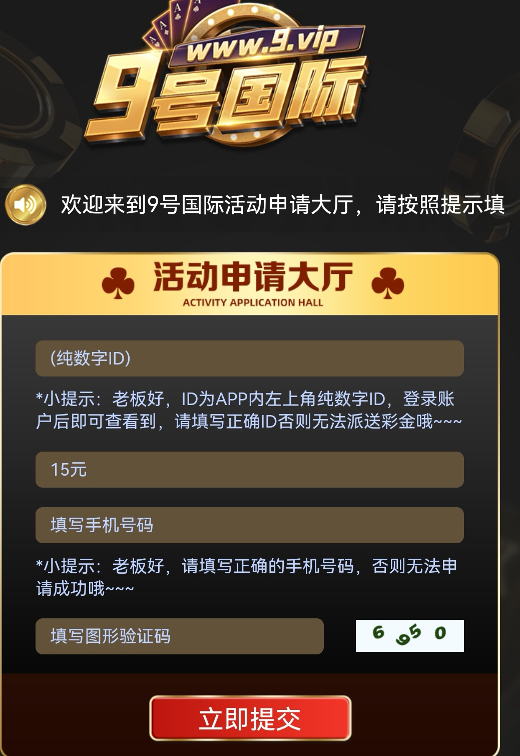 也可以去找客服申请短信特邀彩金审核人数较多,应该一至两个小时审核派送