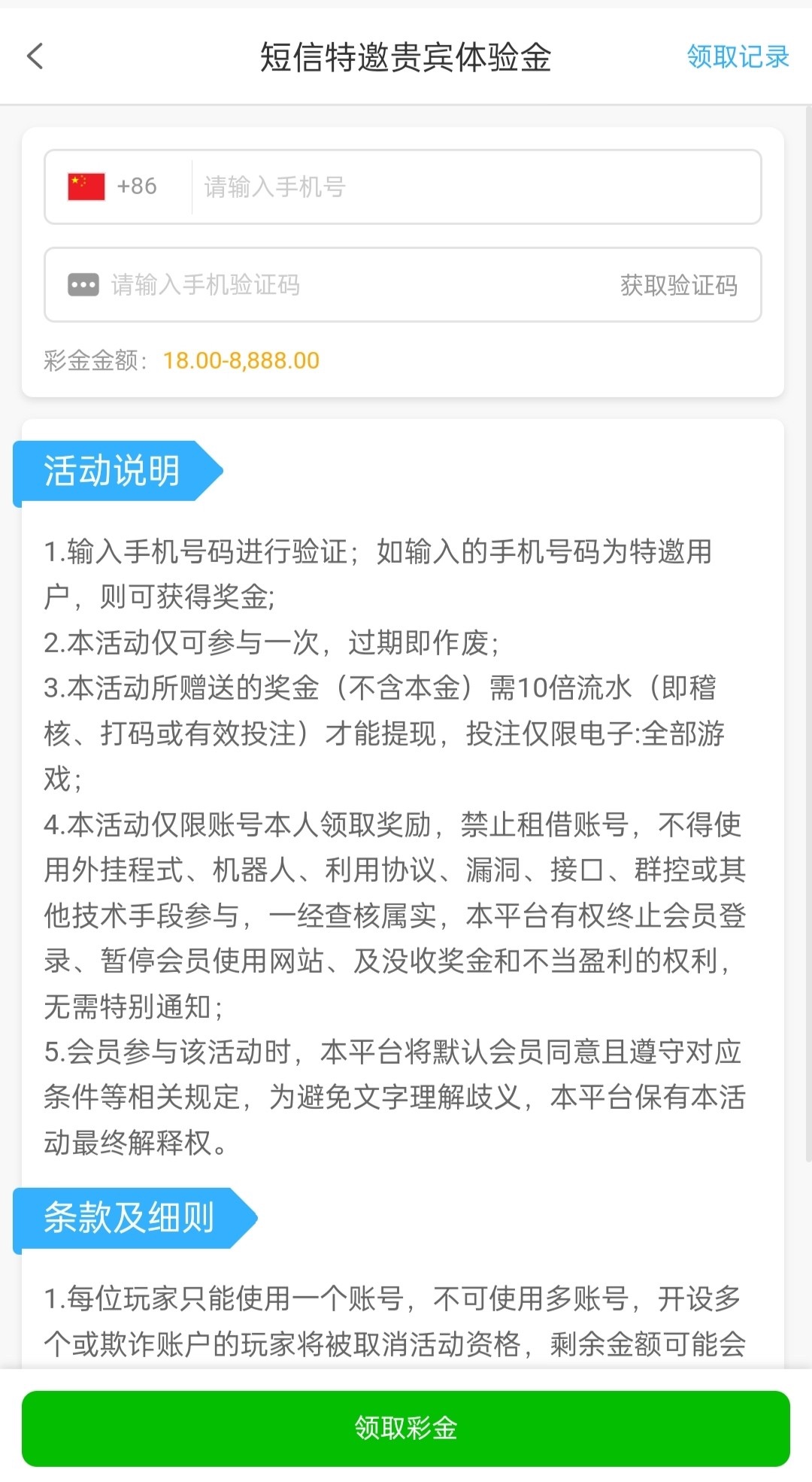 新用户注册优惠特邀自助18彩金