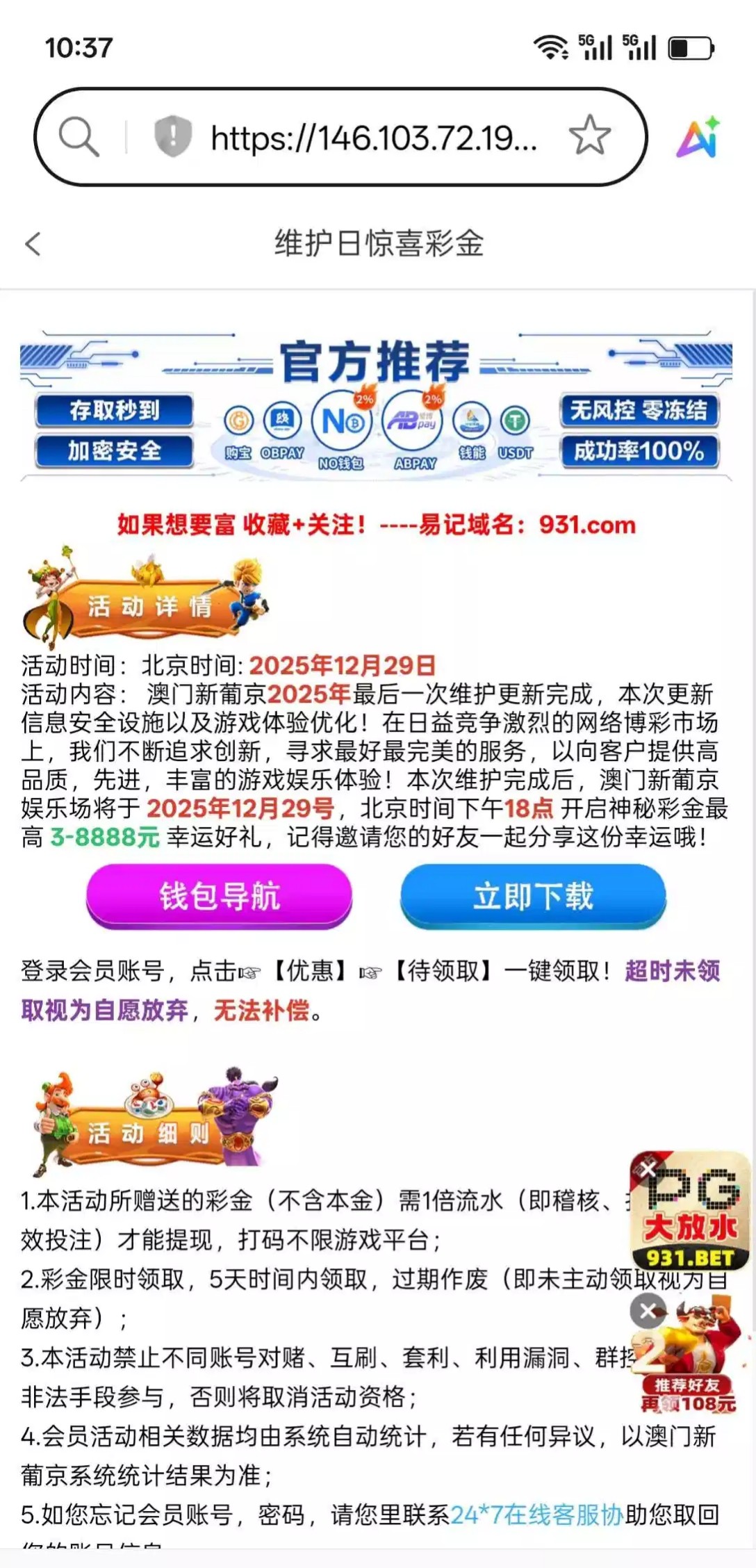 下午6点后登录领取,有号的注意一下931.com