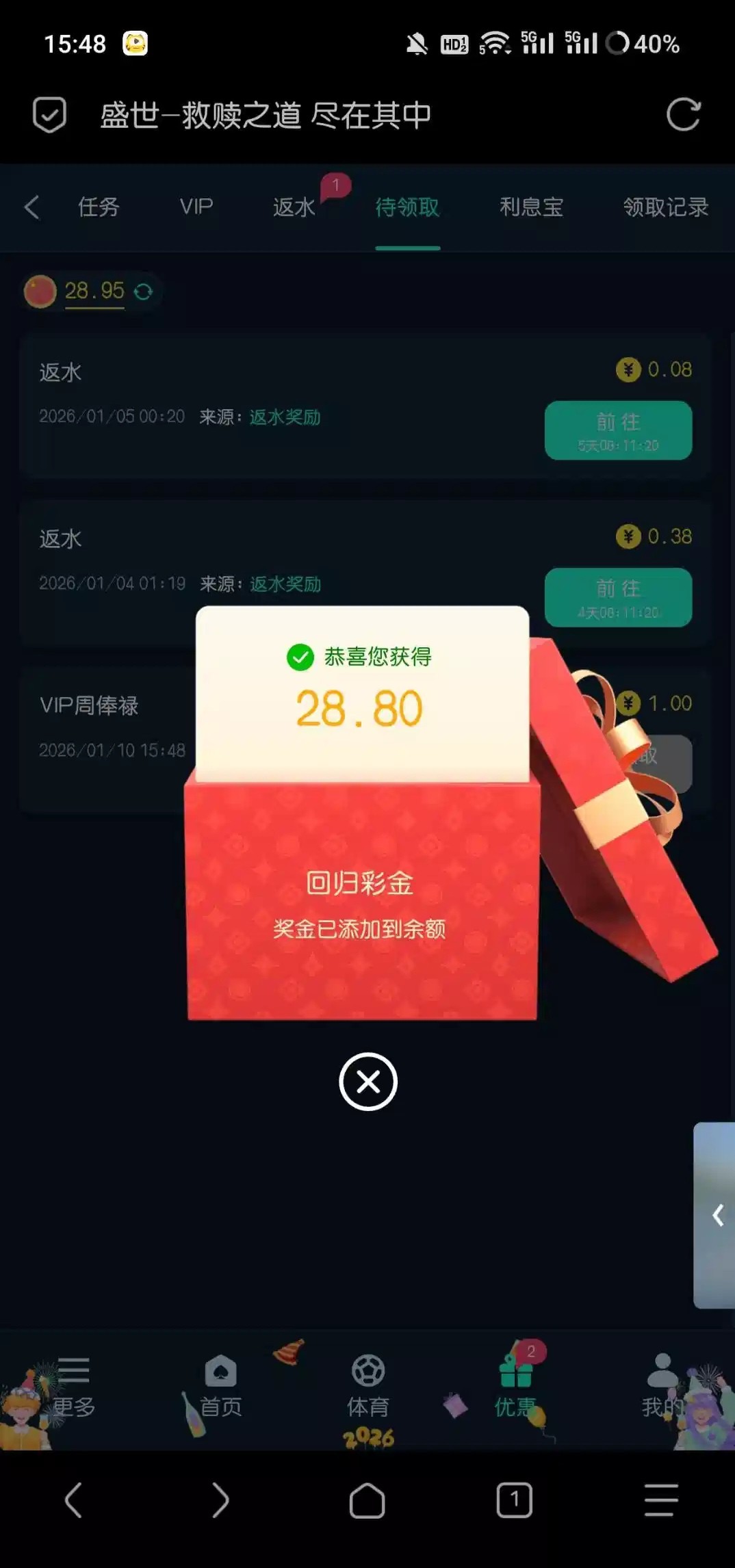 几天没登录有回归彩金玩过的都去看看