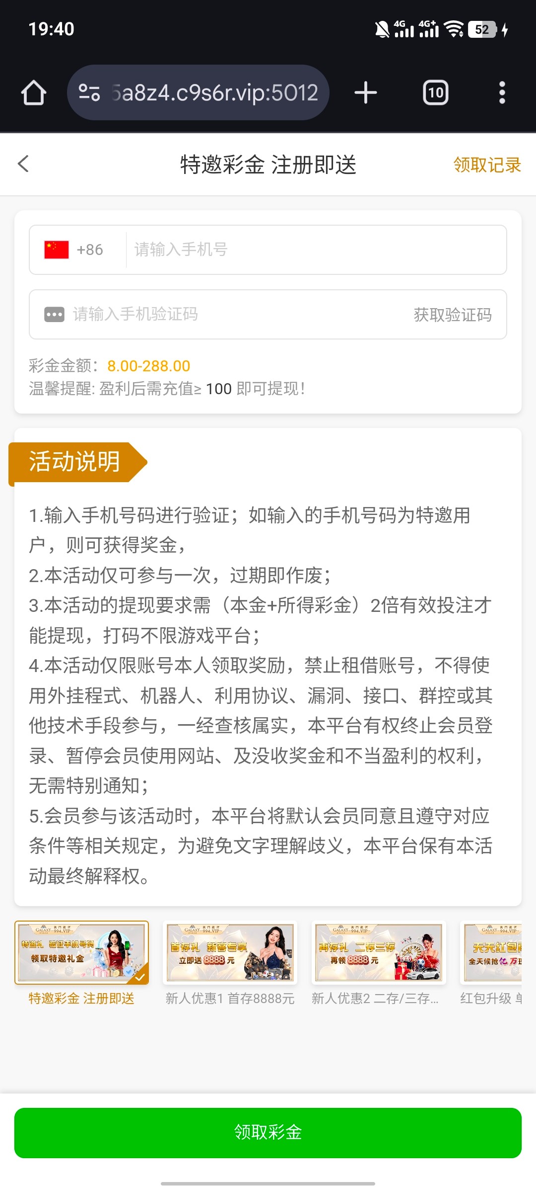 自助特邀碰瓷 最低8元 提现需要充值100 半黑自测 谨慎充值