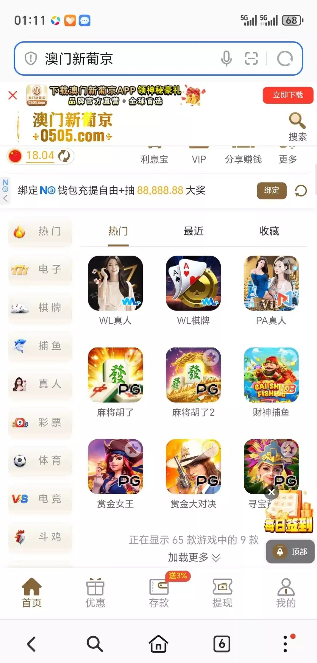 登入上去就有待领取18,充值过的上去看看有没有 0505.com