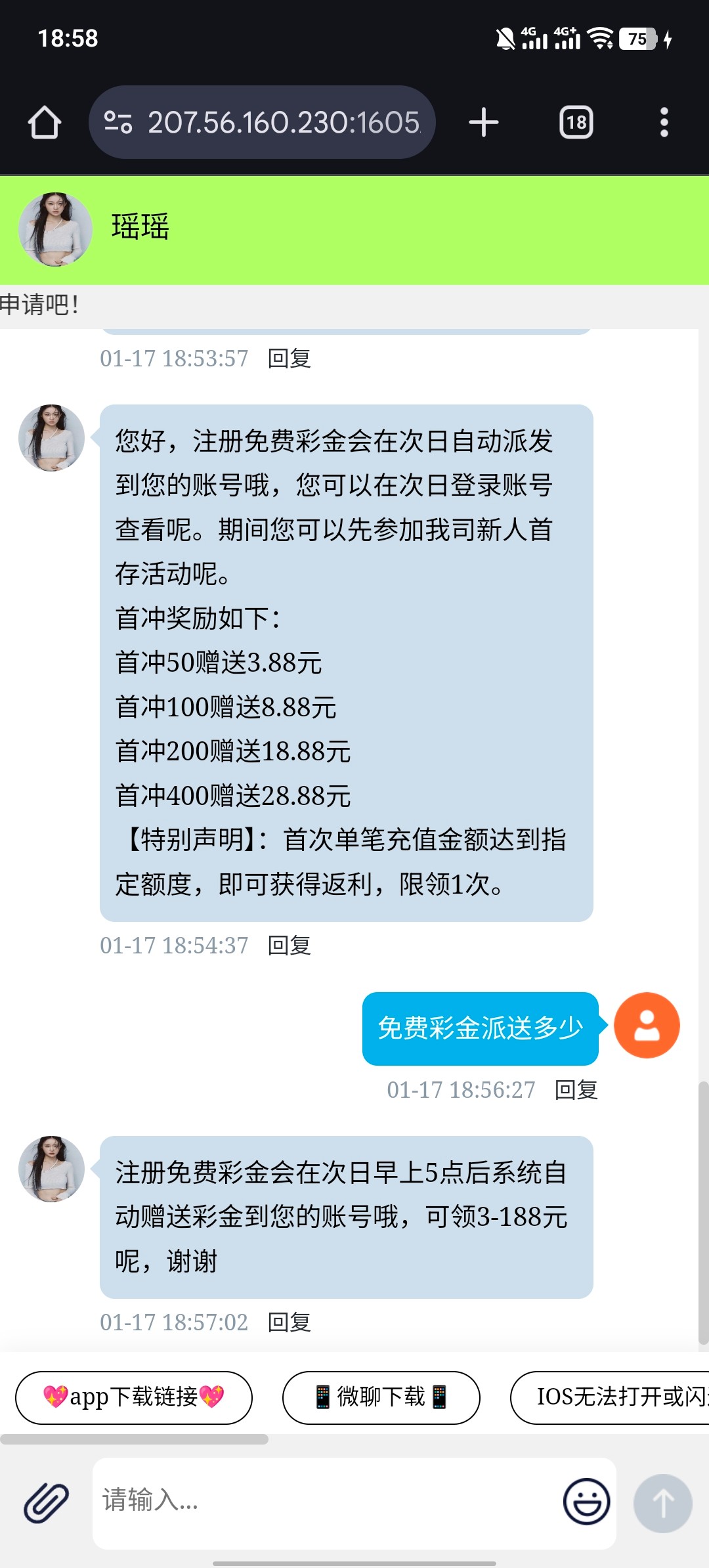 我是刚刚 接到特邀电话去注册的 特邀彩金次日5点派送 你们自己去试一下碰一下