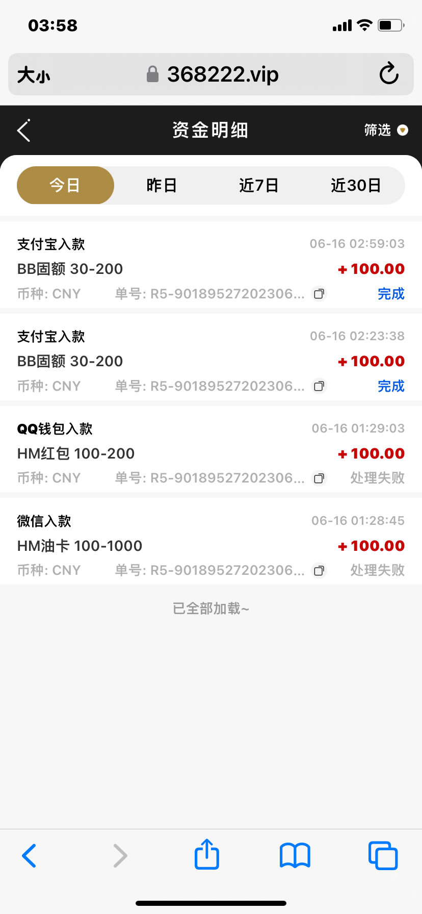 充值二百,先提现四百被黑,剩下的打到2700又输完,账号又被冻结